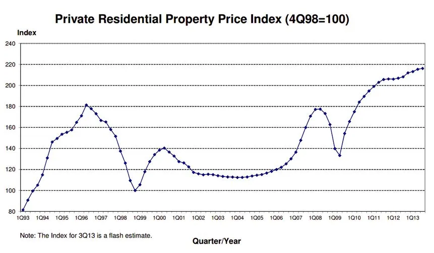 The Urban Redevelopment Authority (URA) released the flash estimate of the price index for private residential property for 3rd Quarter 2013.