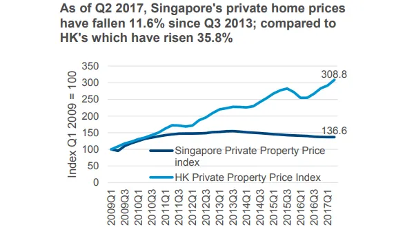 This beat Hong Kong's private home prices, which rose sharply over the same period, by 35.8%.