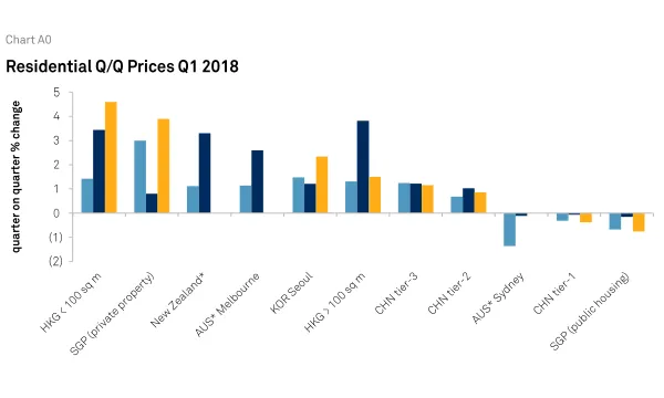 In Q4 of 2017, prices changed by less than 1%, but in Q1, prices jumped by almost 4%. "Private housing in Singapore is showing price increases as global economic performance improves (private housing tends to be sensitive to foreign demand," S&P Global Asia-Pacific economist Vishrut Rana said.