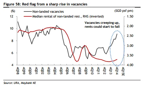 According to a report by Maybank Kim Eng, despite their negative correlation with vacancy rates, rental rates have been fairly resilient so far. They believe this can be credited to fairly manageable mortgage burdens as interest rates are low.