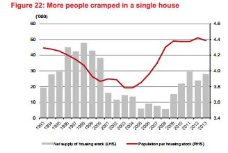 CIMB adds that the population has increased to a historically high level of 4.4, suggesting that there are now more people cramped under a single roof than before, implying a pent-up demand.