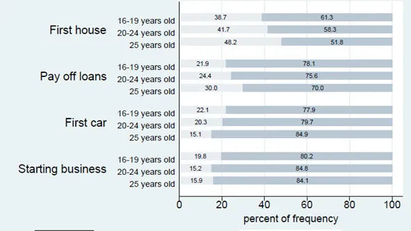 The second most important goal across all age brackets was to pay off loans, with 21.9% of 16-19-year-olds, 24.4% of 20-24-year-olds, and 30.0% of 25-year-olds, saying they aim to achieve this.