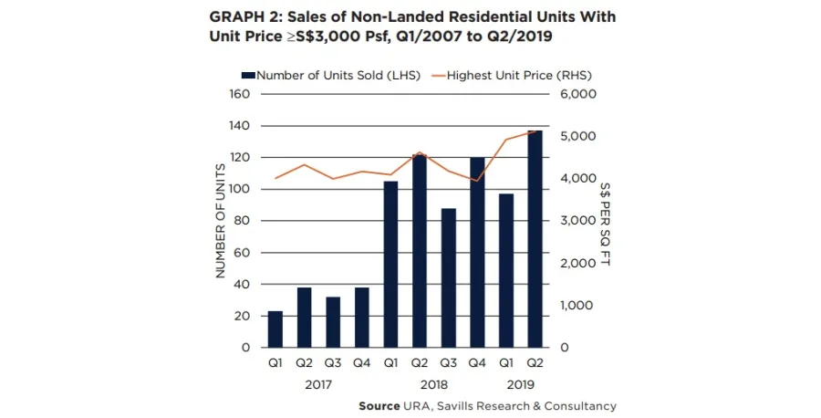This chart from Savills shows that 137 luxury condos were sold in the second quarter of the year, marking the highest number of sales since before the Global Financial Crisis.