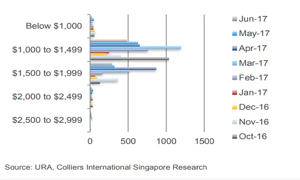 Units in the price range of $1,000 to $1,499 psf are the most attractive.
