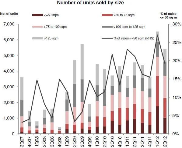 Take-up of units smaller than 50 sqm accounted for 19% of new sales in the second quarter, less than the 27% in the previous quarter.