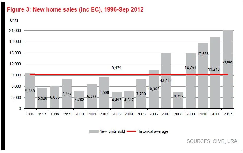 According to CIMB, Sep’s new private home sales rebounded 84% mom to a new three-year high of 2,621 units, exceeding Apr’s numbers and tipping 9H12 sales over 20k units, above 2011 levels.