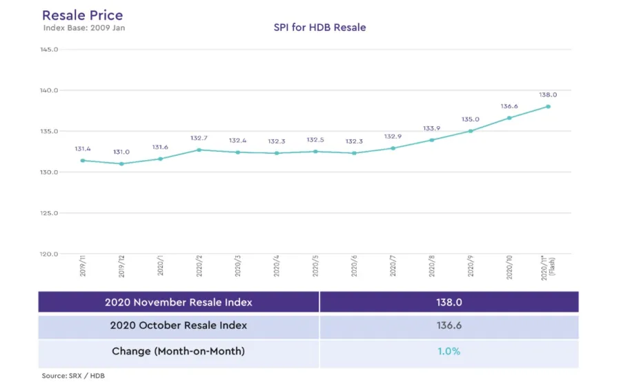 Data from the latest market flash report by SRX revealed that resale prices jumped 5% YoY in November compared to the same month in 2019, driven by increases in the prices of all room types.