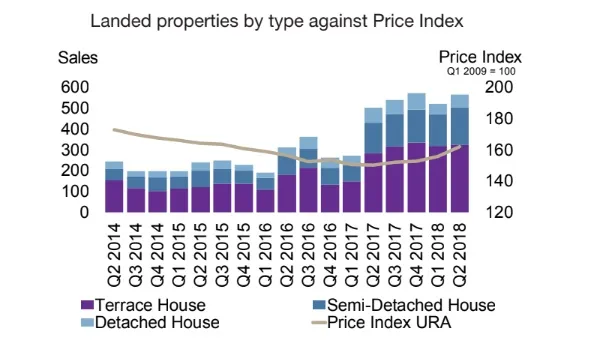 “However, more buyers are purchasing terrace homes with a higher price quantum,” the firm explained. “This was seen from the 43.8% QoQ increase in terrace homes of $3m to $4m, from 64 units in Q1 2018 to 92 units in Q2 2018.”
