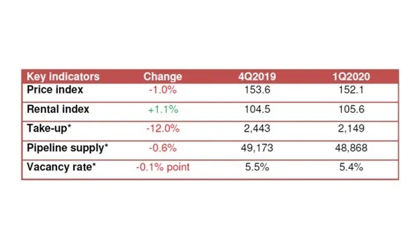 Private home prices dipped 1% QoQ in Q1, reversing the 0.5% rise seen in Q4 2019, according to data from the Urban Redevelopment Authority. On a YoY basis, prices edged up 2.4% from Q1 2019.