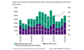 This chart from Edmund Tie & Co. shows that new condo sales volume is expected to surge 44% QoQ to around 3,100 units.
