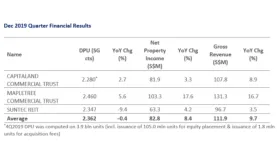 Top 3 S-REITs' returns hit 26.9% in 2019