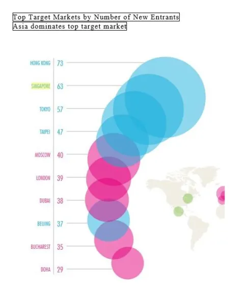 Hong Kong is in the first place with 73 new brands. Singapore is followed by Tokyo (57), Taipei (47), Moscow (40), London (39), Dubai (38), Beijing (37), Bucharest (35) and Doha (29).