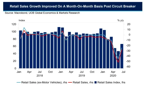 “However, these above-mentioned industries did see a strong pick-up in their month-on-month seasonally adjusted growth rates, suggesting some retail demand has returned post circuit breaker,” Gan added.