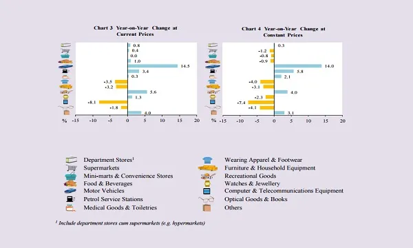 Meanwhile, the overall retail sales growth was spurred by recreational goods, petrol service stations, watches & jewellry, food & beverage, department stores, supermarkets, and medical goods & toiletries. They rose between 0.3% to 5.6% over the said period.