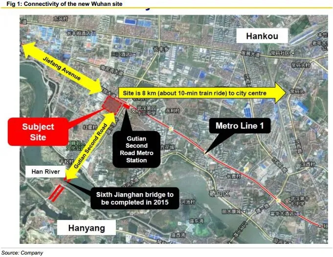 Leveraging on its presence. Wuhan is where CMA’s Central Region. Team is located, and there will be economies of scale following its fourh acquisition. The site’s attributes are attractive. It is situated at the crossroads of two arterial roads and is directly connected to Wuhan’s Metro Line 1, which is already in operation. The site will serve an immediate catchment of 500,000 people within a 5-km radius and the mall is expected to be completed in 2015.
