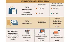 Retail sales down 13.3% to $3.3b in March
