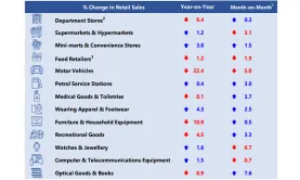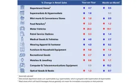 Motor vehicles and furniture & household equipment led the decline in sales.