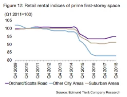 Chart of the Day: Average gross rents for prime retail space in Orchard Road edged up 1.5% to $37.80 psf in 2018