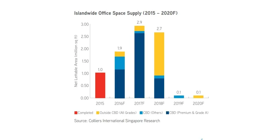 In 2017, office spaces are expected to rise up to 2.9 million sq ft., with supply in CBD almost doubling.