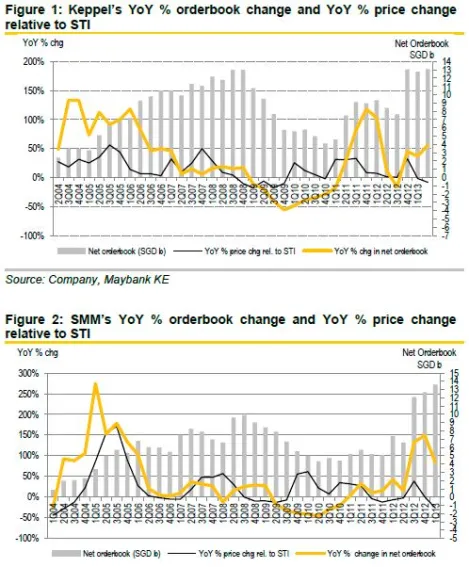 According to Maybank Kim Eng, Singapore rigbuilders (Keppel Corp and SMM) have underperformed the STI by 3.1% and 7.7% respectively YTD, despite what we see as a sustained momentum of new order wins.