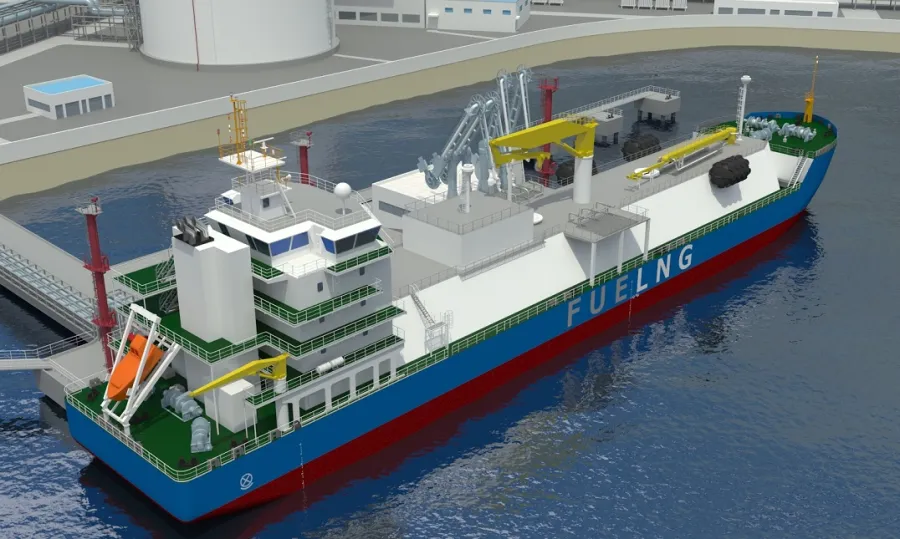 The dual-fuel LNG bunkering vessel can harness boil-off a gas which is a by-product of bunkering operations as well as continuously evaporating LNG in the cryogenic tank. The vessel’s barge-like extended flat surface also maximises vessel compatibility enabling FueLNG to deliver LNG bunkers to a wider range of vessels. It will have a capacity of 7,500 cubic metres.