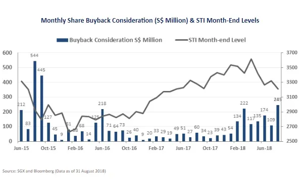 The August buybacks reached its 35-month high, according to SGX. Moreover, the half-month figures for August had already crossed the $100m threshold as it hit $116.5m.