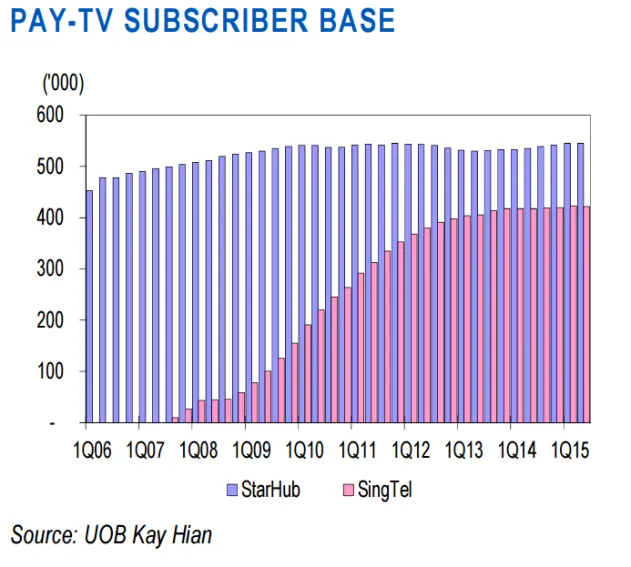 StarHub used to be the undisputed leader when it comes to providing pay-TV services. In recent years, however, SingTel has aggressively increased its pay-TV market share and encroached on StarHub's customer base.