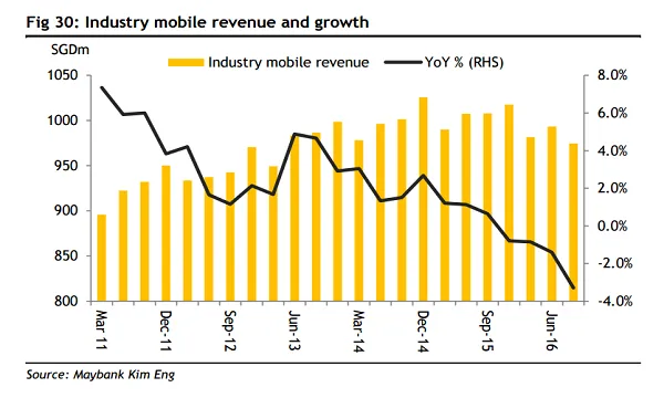 Chart of the Day: Check out the trend in mobile revenue growth of Singapore telcos