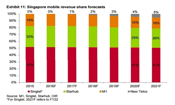 It is without doubt that the incumbent telcos would have to lose some of its mobile market share as the new kid comes around the corner. Analysts predict that by 2021, TPG Telecom would have captured 5% of mobile revenue share, with M1 being the most impacted given its exposure to Singapore.