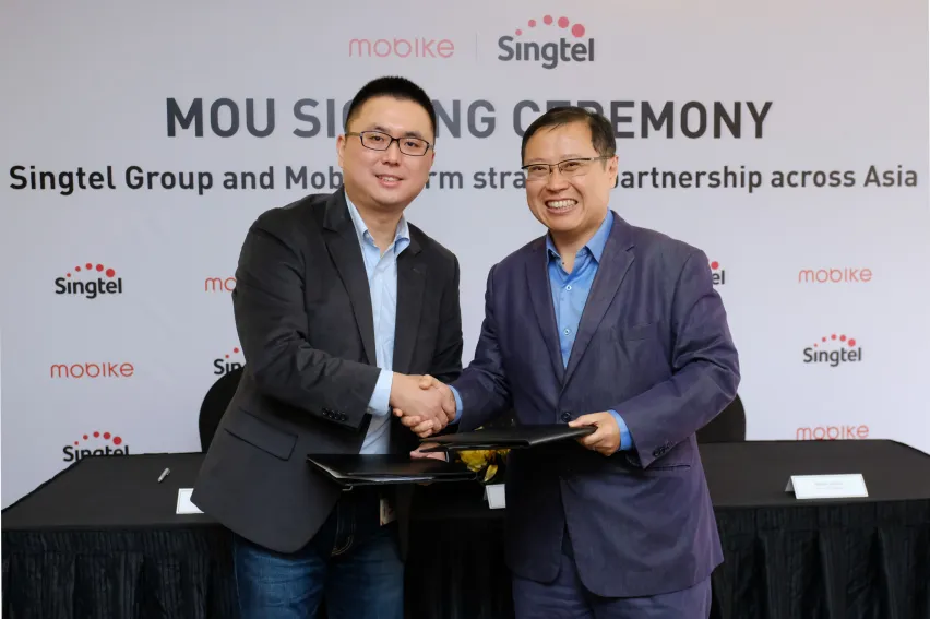 Singtel signed a memorandum of understanding (MoU) with bikeshare firm Mobike to facilitate mobile payments for bike rides across Singapore and Asia.