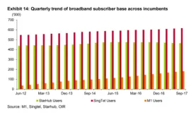 Chart of the Day: StarHub's broadband subscribers lags Singtel and M1
