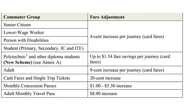 Despite cost pressures from higher energy prices and local manpower wages, the PTC has granted fare concessions to certain commuter groups, increasing by $0.04 for seniors, lower wage workers, persons with disabilities (PWD) and students and $0.09 for adults per journey, according to a press release.