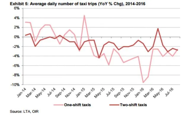 While the downtrend is blamed on the rapid expansion of the private hire car service providers, mainly Grab and Uber, OCBC Investment research believes that the strong momentum is unsustainable over the long-run. Traditional taxi model, it said, is still a better full-time job option.