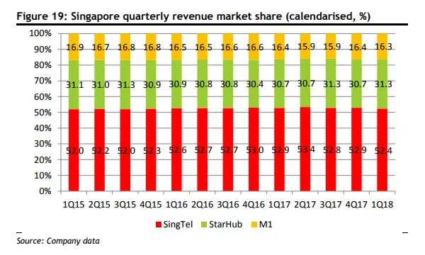 Singtel has also always exceeded the 50% market share ever since Q1 in 2015.
