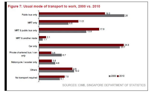 According to CIMB, rail has been gaining popularity as a mode of transport, with the proportion of residents relying on MRT having jumped from 24% in 2000 to 31% in 2010.