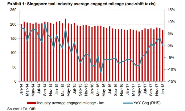 OCBC Investment Research observed that in the recent few months up to January 2018, improving taxi operating indicators are pointing to a more stabilised environment.