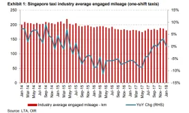 The average mileage travelled by two-shift taxis has been growing again for five months.